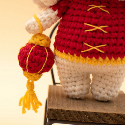 Celebrate joy, longevity, and good fortune with this charming crochet bunny in a lion dance cape! A symbol of prosperity, it’s the perfect festive décor or heartfelt handmade gift.